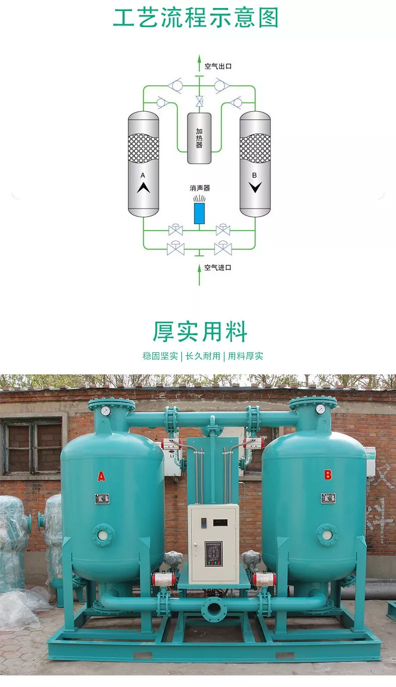 ,增加再生气量,开启干燥器开关,使之经过40一60小时的自身干燥,干燥器便可正常工作。