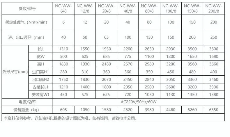 工作压力:0.6~0.8MPa{G)(根据要求可提供0.8~3.0MPa(G)