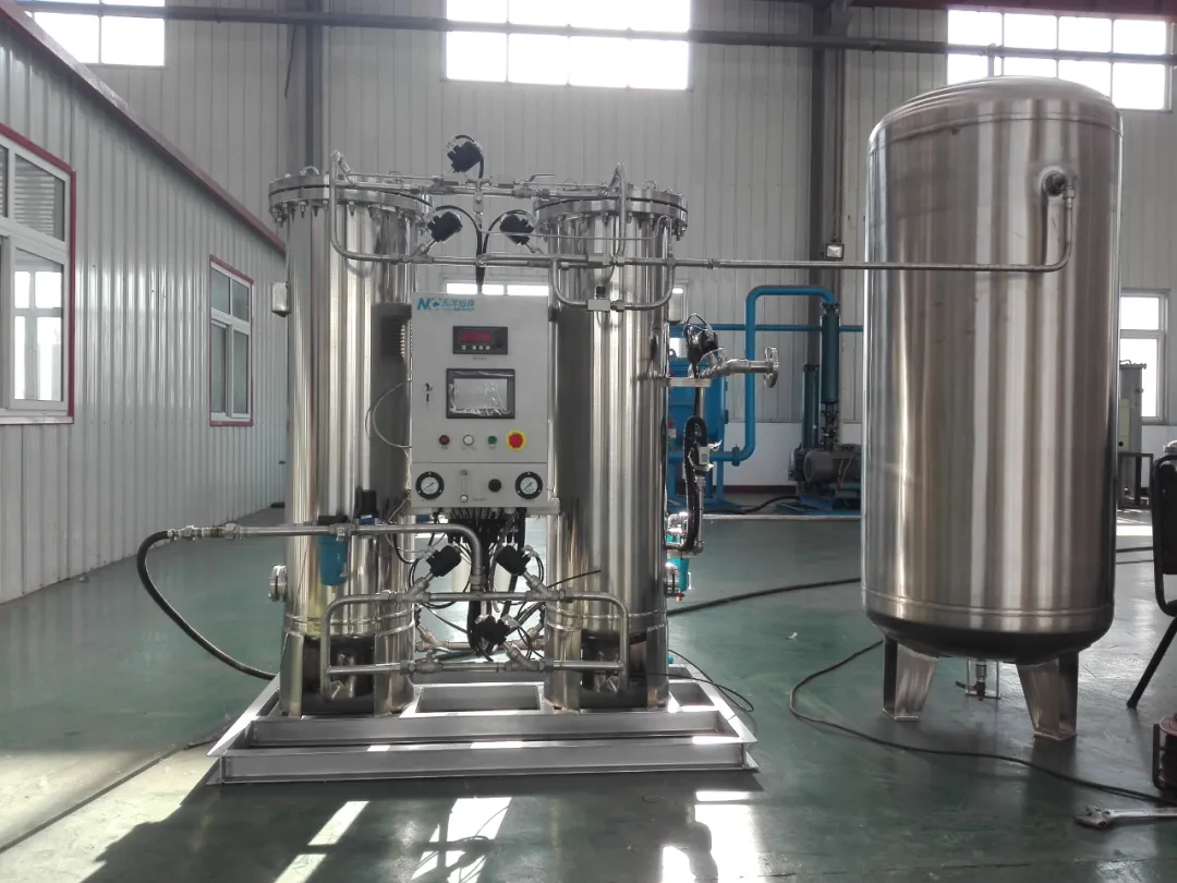 4. 稳定供应:医药生产过程要求氮气供应的稳定性,避免因氮气供应中断导致的生产停滞或药品质量问题。因此,制氮设备需要具备高可靠性和连续运行能力。