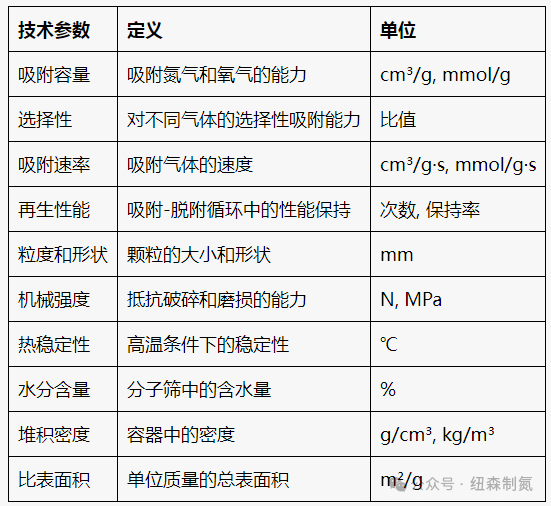 - 定义:分子筛在特定条件下吸附氮气和氧气的能力。